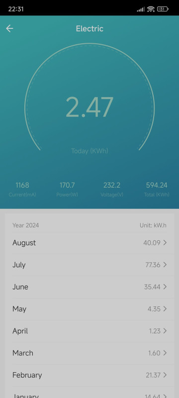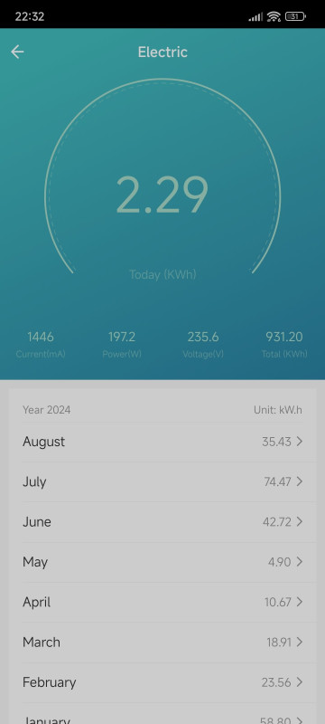 az SDU egy TP-Link Tapo P110-be van dugva, vele mérem a fogyit, saját app kell hozzá nem megy a Tuya/SmartLife-al.