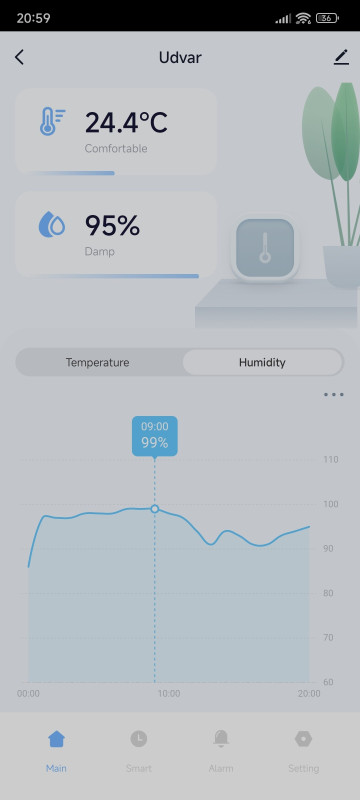 Viszont a páratartalom 80-90 %, ez sok, ha le tudnám vinni 50-60%-ra, akkor sokkal élhetőbb lenne.