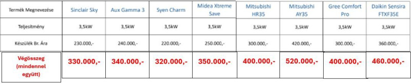 Ha valóban nem sokat fűtenél vele és árérzékeny vagy akkor C&H Vital(gree pulse) az nálunk komplett szerelve 310.000-. től indul. -