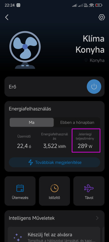 21,5kWh a háza teljes fogyasztása, ebből 7 a háztartás, a maradék 14,5 meg a klímák.