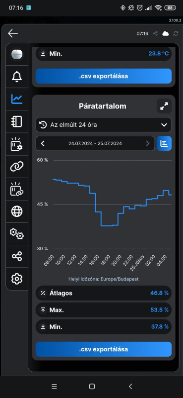 Kb 3-5 %-ot emel időlegesen a páratartalmon, ami légkondi mellett 56-62% közt ingadozik.