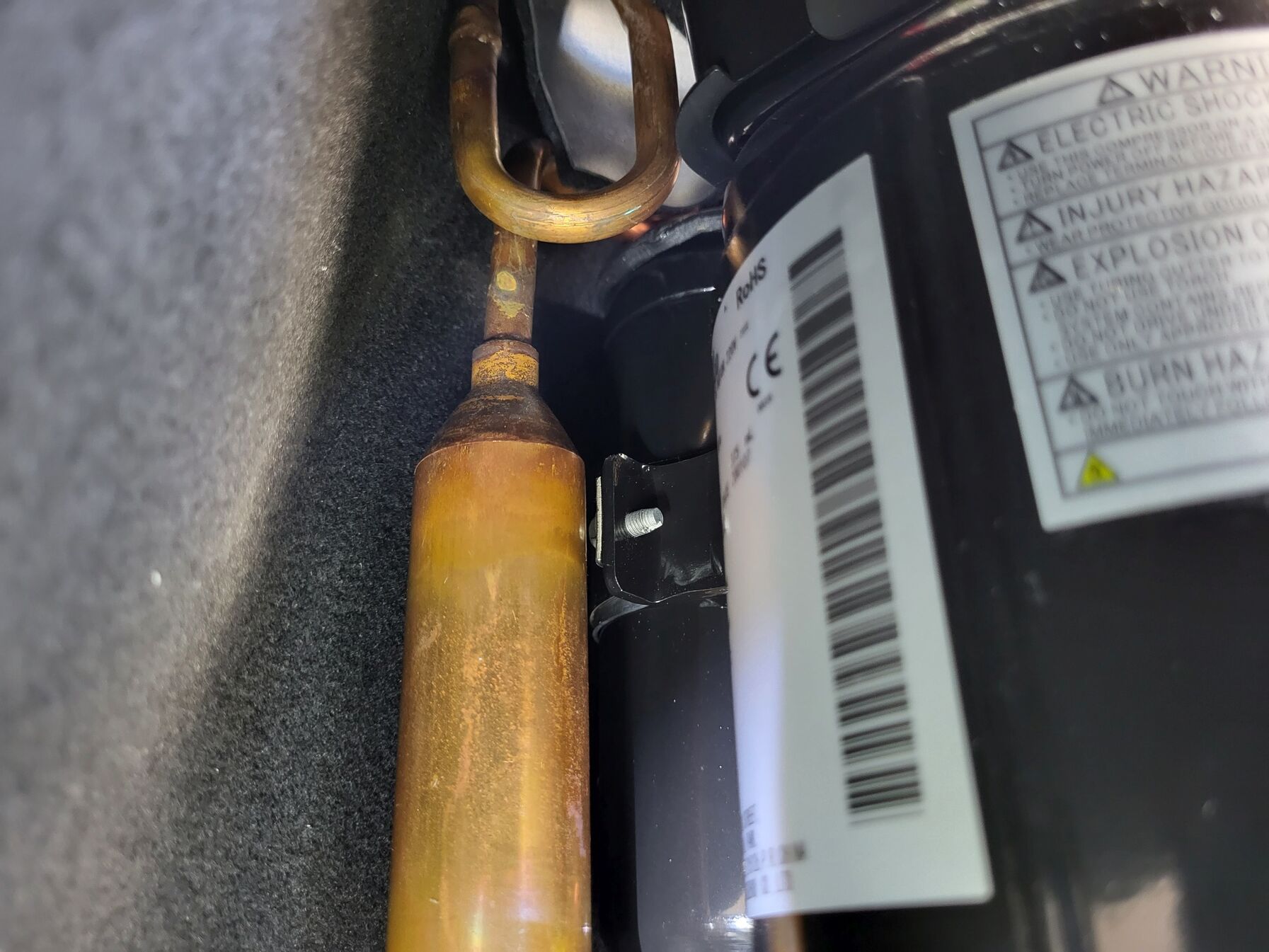 Véleményem szerint ez típushiba, nálunk a családban 3-ból 3 csinálja (az enyém már csak csinálta) és itt a fórumon is volt már aki írt erről évekkel ezelőtt is. Én azt találtam, hogy összeért belül két cső a kompresszor kabátja alatt, ez adta ezt a kattogó hangot. [kép] Csak akkor jön elő, amikor 16Hz-re szabályozza a kompresszort, ilyenkor jobban berezeg és jön a kattogás. Alulról megnézve látható is, hogy hol ért össze a két cső: [kép] A javítás marha egyszerű, egy kicsit odébb kell hajlítani a két csövet egymástól