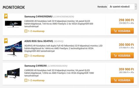Nagyon megtetszett a 32:9-es képarány, mert gyakorlatilag két 16:9-es 27 colos monitor egyben a felület. A SAMSUNG C49RG90 típust néztem, ami egész jónak tűnik több szempontból (2db DP, 120Hz). Mi a véleményetek róla?