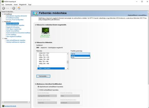 Én a Full Hd-s ACER 165 Hz-es monitoromon a következőket tudom beállítani:
