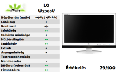 Úgyhogy ez ne legyen szempont a 2412 ellenében. Egyébként is jobb a feketéje a tesztek, és pár itteni szaki megfigyelése alapján, mint a 2312HM-nek, ergó kicsit jobb élményt is nyújt filmnézés közben, s azok az ominózus fekete csíkok is kevésbé lesznek láthatóak...