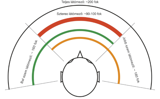 A retina szélén a látásélesség jelentősen romlik, az 1 szögperc helyett elérheti az 1 szögfokot.