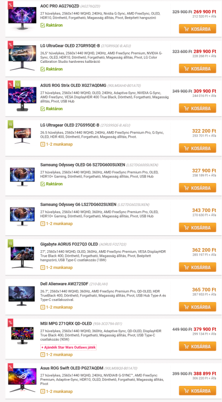 Tehát marad a Gigabyte, MSI vagy a legolcsóbb LG. Ezekből 2-t még soha nem láttam a 3. pedig legalább olcsó.