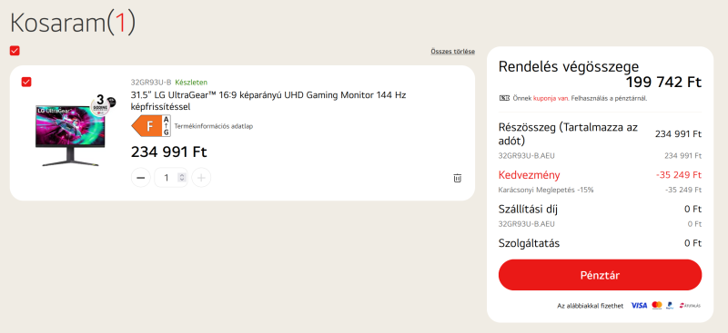 az lg-nél hétfő estig 15%-os kedvezmény bizonyos termékekre