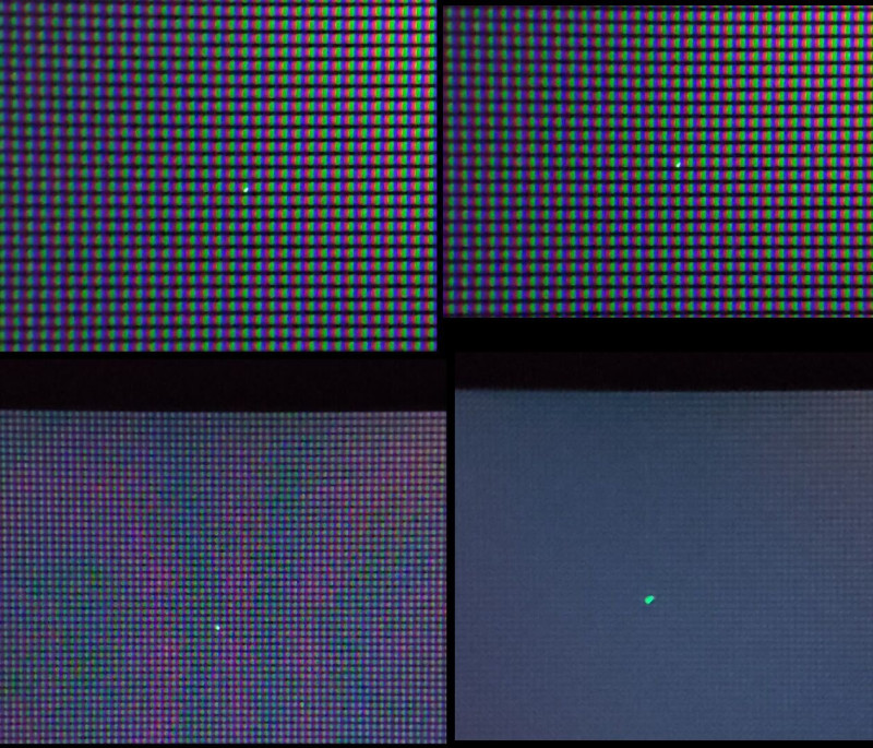 Az ügyfélszolgálat nagyon kedves volt végig, egy szervizes munkatársukat kiküldték a raktárba és letesztelt nekem egy monitort amit sorozatszám alapján félretettek nekem és 24 órán belüli szállítással fel is adták. Minden full korrekt volt, tényleg nagyon rendesek voltak.Csak az a gondom, hogy ezen is van 2 db pixel hiba (felső kettő 1 hibát mutat, alsó kettő a másik hibát).