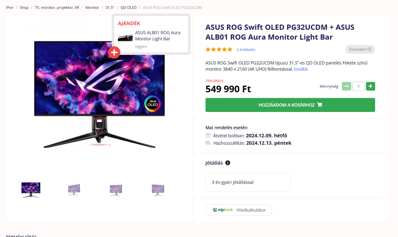 Nincs végre pixelhiba, szép a képe, jó a felbontás, design, állíthatóság. Csak ez a fránya bal alsó sarkos erős IPS glow ne lenne...