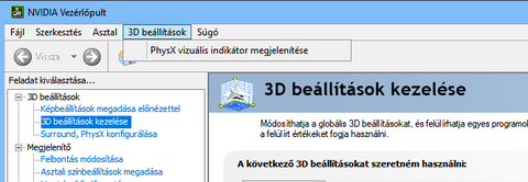 Köszi mindenkinek, de nálam nincs "Megjelenítő" opció, hanem csak ilyen "3D beállítások", ott meg ilyen "PhsyX vizuális indikátor megjelenítése" lehetőség van csak, aminél a kérdés szempontjából tök mindegy, hogy van-e előtte pipa, vagy nincs.