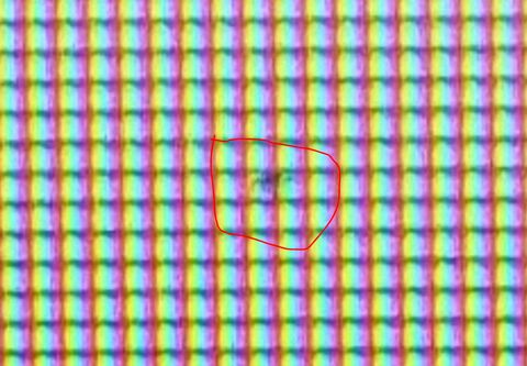 Időközben megérkezett az új monitor is. Ezen egy gyanús foltot látok, de nem tudom eldönteni, hogy ez mi. Az egérmutató felett van egy kicsivel egy feketeség (5cm-ről fotóztam). Ha rázoomolok úgy látom, mintha meglenne a piros, sárga, zöld és kék szín is, de mintha a kék és piros között lenne egy "lyuk". mintha a kék fele olyan széles lenne, mint a többi kék subpixel? Ilyen létezik?
