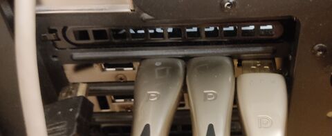 Éppen csak a tekintélyes csatlakozó méretek miatt (majdnem 1 cm a kábel vastagsága) bedugni nem tudom őket a VGA-ba, pontosabban sikerült, de hosszútávon így nem maradhat, úgyhogy egy kis reszelés még visszavan. -