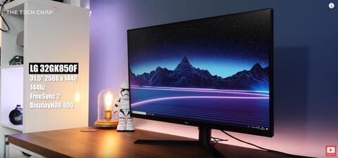 The first monitor we tested was the LG 32GK850F, a 32-inch flat VA panel with a 1440p resolution and 144 Hz maximum refresh rate. This is also a FreeSync 2 certified display, supporting HDR with DisplayHDR 400 certification. This monitor has a 50 to 144 Hz refresh window, so it supports a crucial feature called low framerate compensation (or LFC), which extends the adaptive sync window down to 1 Hz, allowing the monitor to have no minimum refresh.