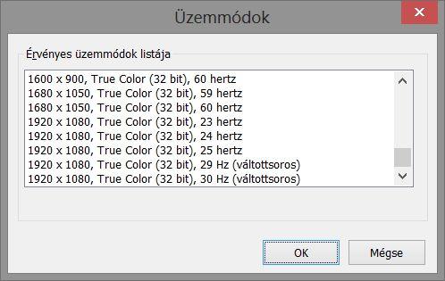 BonFire veterán Most nézem a VGA üzemmódjainak a listáját és full hd-ban ilyeneket tud: 1920x1080 24 Hertz