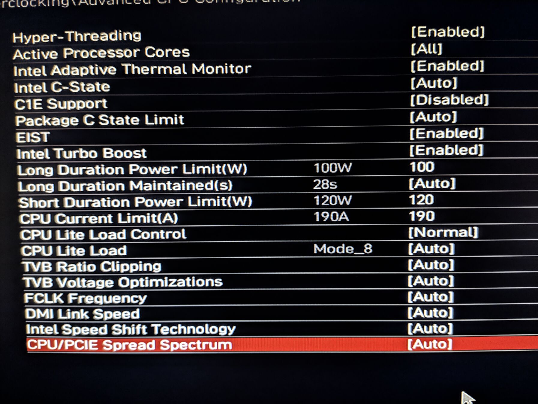 Ha lekorlátozom short/long 120W/100W 190A-ra, akkor single core marad stock K szint, multi core stress test 5%-al kevesebb.