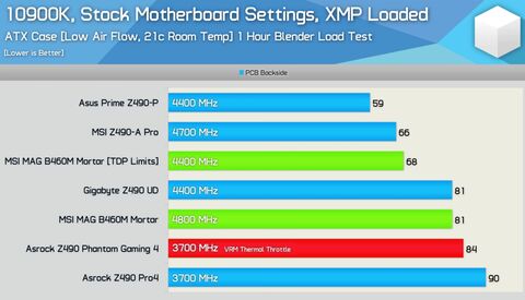 A Z - s lapok (főleg a 490 - esek esetében) rendkívül túlfeszelik gyárilag a procikat, míg a B - sek nem, ezért is mehet magasabbra a fogyasztás, ezzel együtt a melegedés. Pont Nexus figyelmeztet erre mindenkit a Z490 - es lapok kapcsán.
