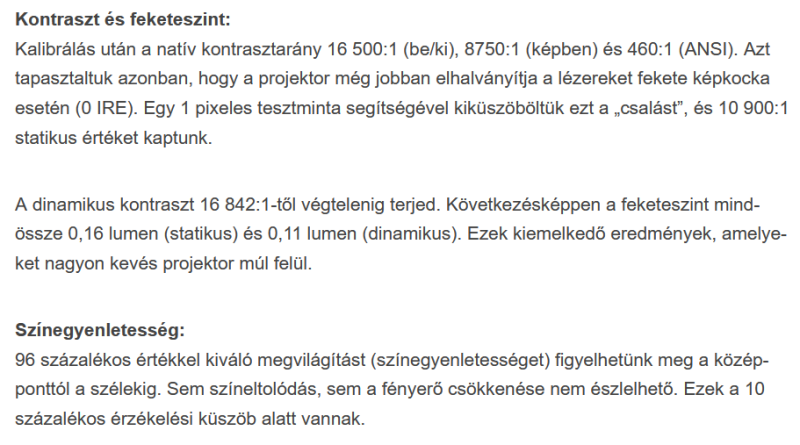 Az ára, meg a gagyi manuális lens shift/zoom/focus nem szimpi, de azért nagyot gurítottak az 5000-eshez képest. Végre van itt is királyul működő Tone Mapping, 16500 on/off, 460 ANSI kontraszt, 96%-os DCI P3 színtérlefedettség...