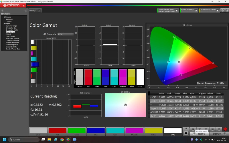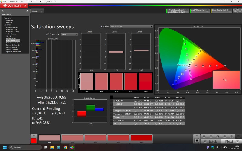 AVELI metal-os vászonra volt többektől érdeklődés. XRT-00288 típusról végéztem méréseket HoldPeak HP-881A luxmérővel és Xrite i1Display Studio colorimeter-el. A mérésekért felelősséget nem vállalok, szakmai ismereteim hiányosak a témában. Lehet a műszer nem is pontos, mert a számok alapján elég alacsony fL értékkel mozizok, ami nem tűnt fel, és elegendőnek is érzem. Lehet azért Viktort majd megkérem(, ha vállalja) nézze össze az Xrite-omat az övével, hogy mutat-e eltérést.
