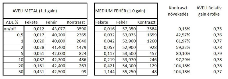Tehat 1% adl mellett nem fogsz 2000:1nel tobb kontraszt aranyt merni. De akkor lássuk az adl mereseket bekapcsolt dynablack mellett, az többet mind minden szónál.