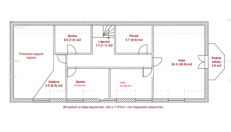 Az emeleten pont nem a nappali feletti nagy üres térbe raknám az AP-ot (mert akkor távol lenne a fontos helyektől), hanem a folyosó plafonjára, az iroda és nagy háló bejáratához közel.