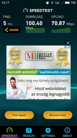 - 5GHz-es Wifin jól hozza a sebességet (DIGI 100/50 simán átjön rajta)