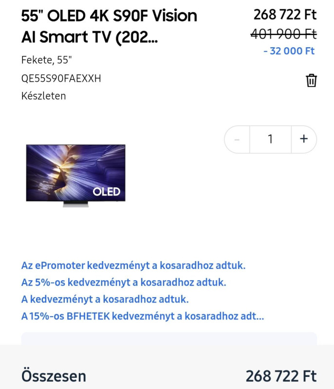 Köszönöm mindenkinek a segítséget TV választásban, végül S90F lett, mivel le tudtam kuponozni akciós C7K árszintre