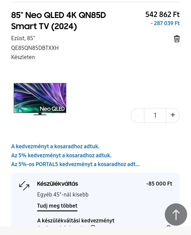 85" Neo QLED 4K QN85D ezt adná a samsung 707000FT ért és nem jövök rá a születésnapos 10% kupont hogy tudnám megszerezni mert írta h jár, de nem adott kódott