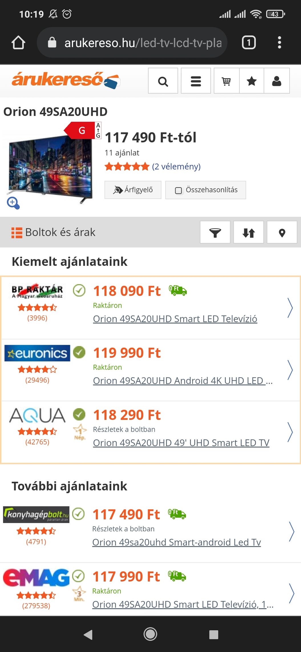 [Orion 43OR18UHD]Ami leginkább foglalkoztat az a 4K-s Orion tv, ugyanis ár értékben az nagyon jó ajánlat és régebben a Orion elég jó Tv-ket gyártott csak hogy ez megmaradt 2018-19-re is az a kérdés...