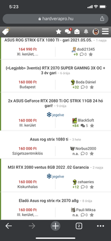 Ha a 3070 üti a 2080Ti-t 180-200 k-s árral, akkor nem hiszem hogy jó vétel még 180k-s használt 2080. Egyenlőre ki kell várni, használt 2080-at venni rossz üzlet, főleg ha tavasszal kijön a 3060 150k-s árral, 2080 teljesítménnyel. Akkor ugye a használt 2080 az új 3060 ára alá kell, hogy menjen. A 2070, 2070 super ára is esni fog, főleg ha kijön a 3050 mondjuk 100k-s árral és 2070 teljesítménnyel / persze ez csak találgatás /