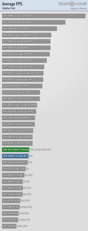 PT-ben jobb az 5060Ti, de az meg mindegy, mert egyik se tud használható sebességet. Az NVIDIA előnye a DLSS elterjedtsége. -