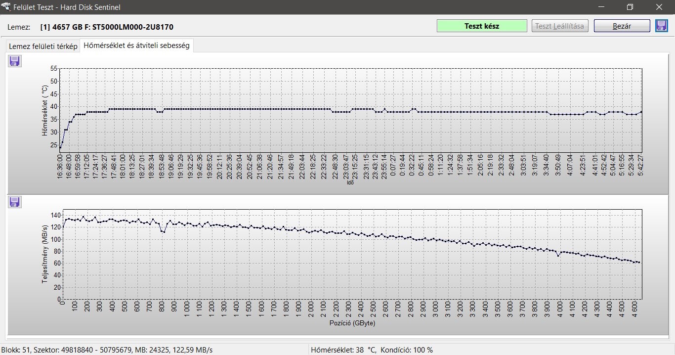 Rávettem magam a másik Seagate Exos M 30TB burn-inre, épp zakatol, elején kb 270 MiB/s volt a speed, 15 óra írás után után 14 TiB fölött jár már, jelenleg 250 MiB/s és 43 fokos a HDD hűtés nélkül zárt házban (21 fokos lakás).