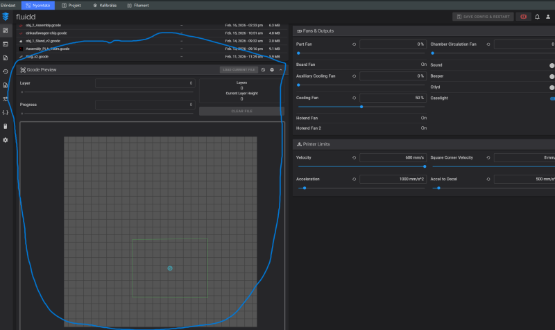 Sikerült! A g kód megjelenítést külön be kell kapcsolni, eddig nem kellett, automatikusan indult. Miért kell ezen változtatni, amikor így szokja meg a júzer?