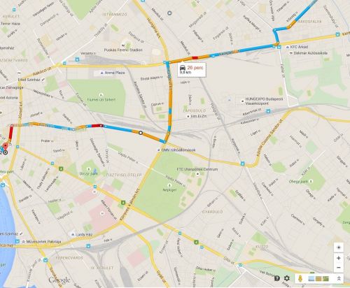 Ezen az útvonalon amin most a google maps autóval 26 percet ír csak oda.
