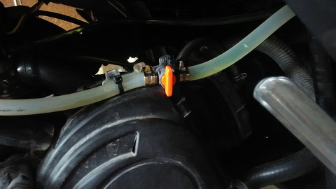 50es Runner benzincsapja rossz, betettem egy műanyag Gardenás kerti cuccot, amit az Obiból szereztem be, de azt most lecseréltem egy univerzális benzincsapra. A képen látható módon oldottam meg a felfogatást. A gond csak az így vele, hogy a csap melegszik, mert átveszi a hőt a fülről, és így a benzint is melegíti, gondolom. Vagy szarjam le, mindegy, hogy melegebb-e a benzin ami a karbiba megy?