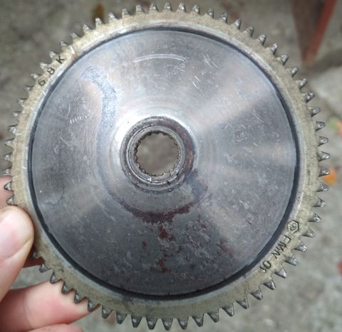 A lendkerék anyája teljesen fellazult (vszínű nem húztam meg rendesen az összerakásnál), a főtengely végi nyomokból az látszik, hogy a lendkerék elfordult a tengelyen.