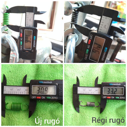 Következő a problémám: 50-es Runner végsebessége jó (óra szerint 90), de a gyorsulása nem igazán. Lassan indul, alacsony fordulatról, aztán szépen lassan felküzdi magát. Gyári új görgők vannak benne, ezért erősebb kuplung rugó beszerzése mellett döntöttem. A boltban némi fejvakarás után a zöld szettet adták. Most volt időm foglalkozni vele, és nekem furcsa ez a rugó. A régi rugó hosszabb nyugalmi állapotban, viszont erősebb. Mindkét rugóra egyforma súlyt akasztottam, és a zöld, elvileg erősebb rugó nagyobbat nyúlt mint a régi. Szerintetek érdemes összerakni a zölddel, vagy felesleges, mert nem lesz jó?