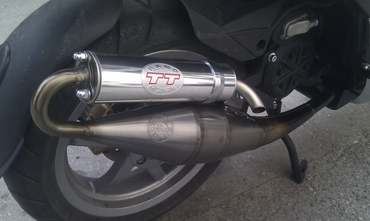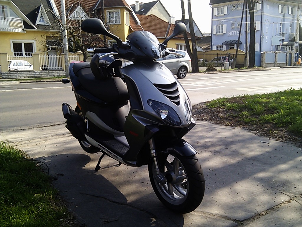 Még nincs jól beállítva, úgyhogy nem tudom megmondani pontosan, de amennyit eddig tapasztaltam, hogy ha jól elkapja a rajtot, akkor sokkal jobban kilő és kb ugyanolyan vehemensen gyorsul 75-80-ig. 50-től hídnak felfele kellemesen tud gyorsítani. Amint kész lesz (remélem megoldják) közzé teszem jó a beállításokat. A kipufogó látszik a képen, a dobhoz kapott 4.8g-s görgők vannak benne és egy fehér kontrasztrugó. Ezeken kívül minden gyári. Érzésre nekem most túl sokat pörög és a 9-10000 közötti tartomány tök felesleges, mert olyan 7500-9000-ig húz jól.