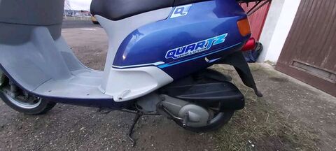 Úgy gondolom egy nagyon érdekes kis robogóra bukkantam. Hirdettek itt a közelemben egy 1999es Piaggio Quartzot 100ezerért. Nagyon megtetszett, irtam is az eladónak, meg is egyeztünk 85ezerben. Lementem, megnéztem, egyben volt viszont nagyon nehezen akart elindulni, menet közben a próba alatt le is fulladt. Miután kiderült, hogy kb 1 éve áll a garázsban, ugy döntöttem megveszem, mert ezt tuti takarítani kell csak. El is hoztuk futóval csütörtökön. Az eladó egyébként nem igazán értett hozzá, csak használta 2002 óta a tulajdona volt a robogó. 50esként volt használva, rajta vannak a matricák, rendben be voltak fizetve a biztosítások. Ami viszont nekem gyanus volt az a KM óra. Az 50ccm-es Quartzok órája 90ig van skálázva, illetve vízhűtésesek. Ez viszont levegős és 120ig van az óra. Kutakodtam a neten, keresgettem de nem igazán találtam semmi infót. Külföldi oldalakon 500euro körül mennek az 50es Quartzok, de azok vizesek voltak mind és 90es orájuk volt. Aztán nagy nehezen sikerült találnom valamit. Találtam egy külföldi hirdetést ahol hirdettel egy Piaggio Quartz 80 nevezetű gépet ... megnéztem a képeket, és végre ... 120as órája volt .... illetve a Quartz mellé oda volt írva hogy SKR City 80. Rákerestem igy : Piaggio Quartz SKR City 80 ... és így már találtam ezt azt. Kb mindenben megegyezik az 50esel, kivéve hogy 80as és levegős. Ma jutottam el oda, hogy szétkapjam és kipucoljam ... a karbi elegge trutyis volt a fuvókák is el voltak tömődve. Szépen kipucoltam összeraktam és lám, pöcc röff. Első rugásra és gombnyomásra is szépen indul. Eddig ahány robogót szétszedtem mindben volt valami komolyabb mókolás .. itt semmi ... talán az ülés zár ami nem az eredeti hanem barkácsolt, de jol müködik. Szépen megy, ereje van, bár kb az elején megtorpan picit majd utána megindul ... görgőkre gyanakszom ... kapni fog majd ujat illetve komolyabb szijat is teszek bele. Külsőre szép, első sárvédőn repedés , illetve a müszrfalat kiszivta a nap, vagy megnyomorgatta az idő, nem tudom, de eléggé kopott ... nem tudom lehet e vele valamit kezdeni. Egyébként automata szivatós a jószág, 17,5 Dellorto karbi van benne. Fúvóka 62es amit keveslek egy 80as gépnek. És most jöjjenek a képek amiket az eladó készített, én még nem csináltam