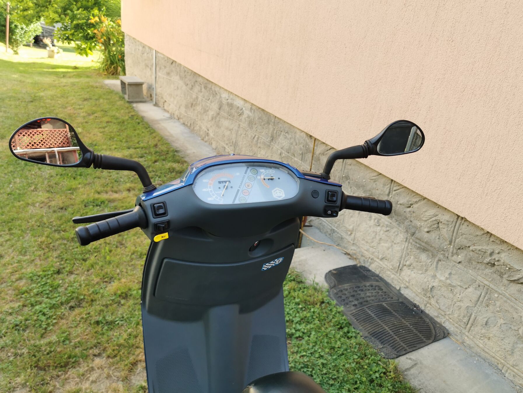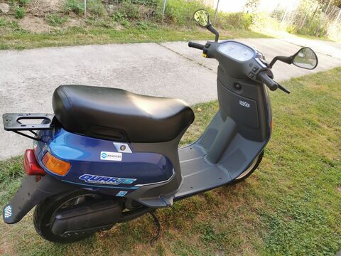 Nos a hétvégén teljesen összeraktam a vasat ( Piaggio SKR City 80 ). Látszik rajta azért az idő, de megpróbáltam kipofozni valamennyire. Sajna a KM óra felett lévö kis gyári plexi eltörött. El volt már gyengülve a müanyag, nem tudtam megmenteni. A szürke rész frissen lett festve, a kékes a gyári fényezés még, illetve a kis csomagtarto és a kipufogó is kapott festést. Karcok horzsolások vannak, de nem vészes. Kapott ide oda egy kis matrcázást is