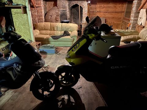 De a lényeg, elhoztam a másikat. Egy 2003-as, utolsó legújabb szériás, Moto Italia-nál vásárolt, első tulajos Gilera Runner Fx 125. A motor makulátlan, szerintem egy igazi gyöngyszem! Magyarországon vásárolt, megvan az eredeti Moto italia-s számlája is! A motorja gyönyörűen jár, de viszont egy kicsit lustábban gyorsul mint ez a régebbi gép amit most hozott vissza a szerelő. Pedig elvileg ugyan az a 125-ös 2T blokk van mindkettőben. Amint hozta a szerelő a régit, oda is adtam neki az újat, nézze meg ezt is. Egyedüli esztétikai hibája a repedt tükrök, ezeket cseréltetem.