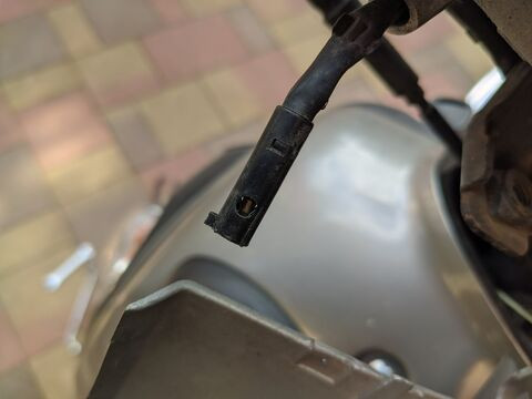 Az alábbi benzincsapot lekaptuk a motorról, mert valamelyik csatlakozóján szivárgott a benzin, majd visszatettük, de valamiért nem folyik át rajta a benzin. A levegeő átmegy rajta, de a benzin nem.