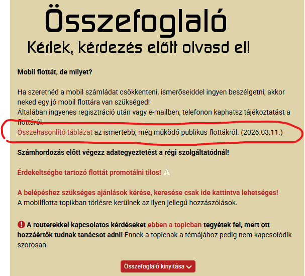 Nem a közlékenység a baj, hanem az, hogy nincs nyitott (bárki számára elérhető) Telekom flotta. Ez csak és kizárólag a szolgáltatóknak köszönhető, mert a felügyeleti szervük is presszionálja őket, hogy ne legyenek nyílt flották, meg a Telekom évekkel ezelőtti saját döntése is ez volt. Amik elérhetőek, benne vannak a táblázatban.