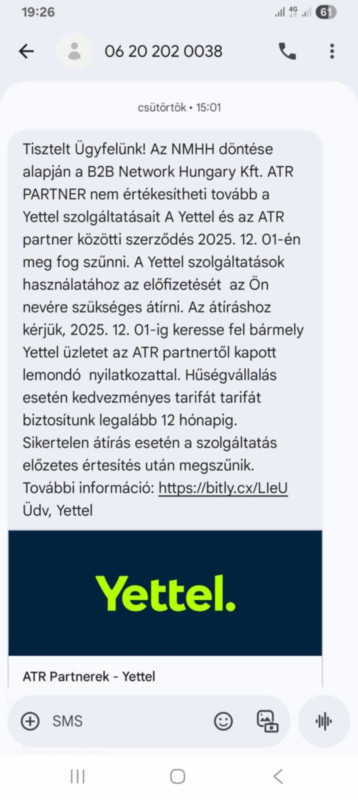 Mobilerőd flotta menedzseri szerződésében is volt kártyám. Azt is felmondta a szolgáltató.