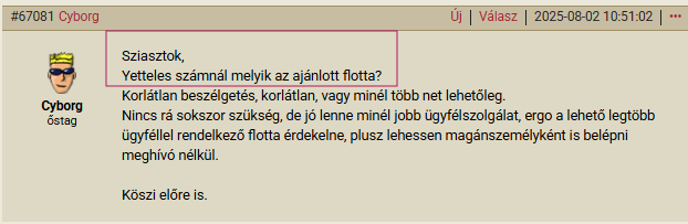 6. Ha új flottát ajánlanál, keresd meg a Topikgazdát, hogy bekerüljön az összefoglalóba!