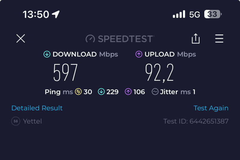 Van nekem is céges t-s telefonom és elméletben az 5g-t is használja, de úgy is max annyit hoz ami egy telefonnak elég. Nem is mértem vele még otthon. Bár az irodában múltkor lejött vele az asztali gépem újrahúzásánál 50gb, de nem valami nagyon gyors.