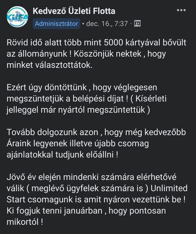 Fura, felmondtam, egyet még várok. Nagyon régi kártya volt, leadnom nem kellett. Előre vagy utólag fizetünk?
