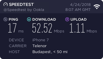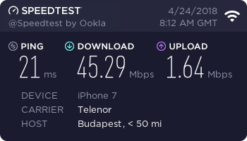 A tegnapi napon jött elő, vagyis akkor vettem észre hogy nem okés valami az internetemmel. Telenor hipernet 100GB-s csomagom van egy huawei e5577 készülékkel. 2.4Ghz-re van beállítva mert mást nem tudok fogni se a géppel se telefonnal sajna, bár nem tudom miben befolyásolná a problémát mivel eddig nem volt semmi gond