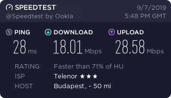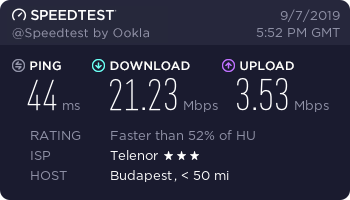 Kissé lassúnak találom a letöltést, az alábbiakat mértem a legtöbb esetben, ettől jobb sosem volt, még este se jobb.4G beállítás esetén: