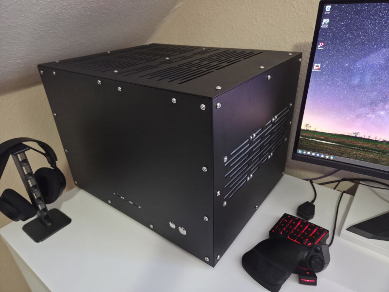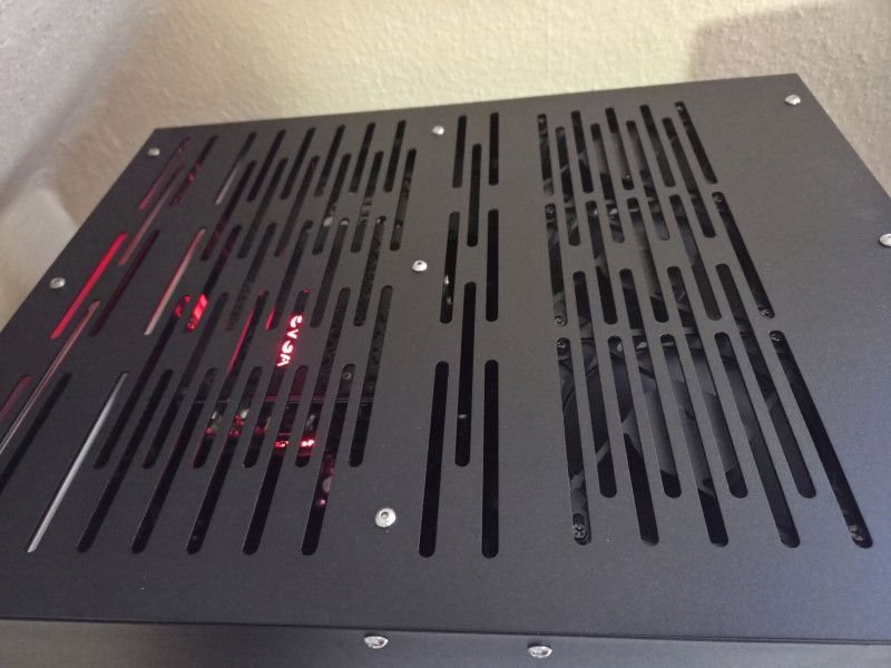 Ház oldalán lévő porszűrő, majd ventikkel együtt. Itt még hosszú csavarokkal szereltem, ma cseréltem a casvarokat rövidebbekre. Alul a táp is kapott porszűrőt természetesen.